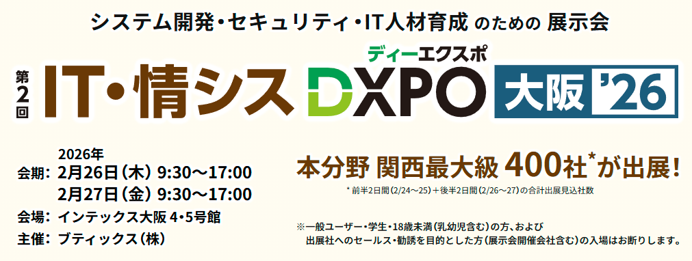 エスエヌシーはこの度、2026年2月26日(木)~27日(金)開催の【第2回 IT・情シス DXPO 大阪'26】へ出展致します。