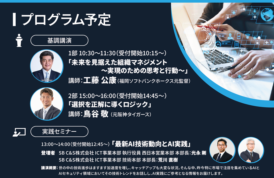 「 SB C&S Innovation Forum 2026 in Osaka 」では、多様な視点を得られる基調講演と、最新 AI トレンドを踏まえたセミナーを通じて、新たな気づきと学びを提供します。